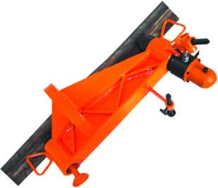 操作液壓彎軌機前,先擰緊卸載閥將液壓彎軌器彎鉤鉤住鋼軌,活塞頂頭頂住鋼軌,再轉動液壓彎軌機絲桿手輪,即可將液壓彎軌機卡緊在鋼軌上。