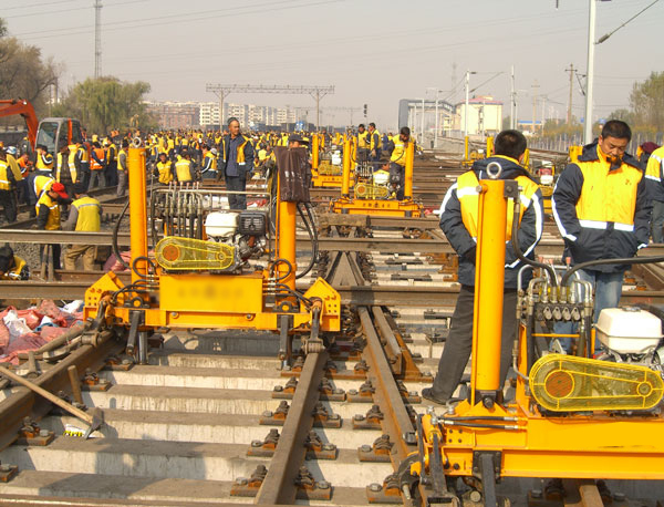 YQBJ-250X110型液壓起撥道機(jī)廣泛適用于新建線路、既有線路的起撥道作業(yè),也可組成機(jī)群用于提速道岔?yè)Q鋪?zhàn)鳂I(yè)中道岔的平起平落及落地后與線路對(duì)接時(shí)撥道作業(yè),是替代壓機(jī)作業(yè)的理想設(shè)備,無(wú)論是線路的起撥道作業(yè)還是提速道岔?yè)Q鋪?zhàn)鳂I(yè)中都突顯了安全、高效、省時(shí)、省力的特點(diǎn)。