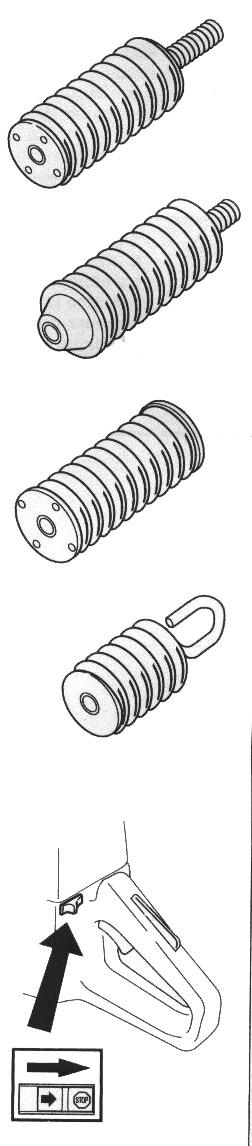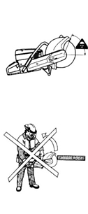 在使用一臺新的鋸軌機前: l 從頭至尾,認真閱讀操作手冊。 l 檢查鋸片的安裝及調整。詳見“安裝”一章。 l 啟動發動機并檢查化油器是否調節無誤。見“保養”一章中“化油器”一節在空氣/汽油混合正確的情況下,鋸片的停止應該是慢慢減速直到最后靜止。緩慢減速的調節在手冊中有說明。對運轉狀態的調節應按此說明正確調節。在緩慢減速狀態未正確調好時,請不要使用鋸軌機! l 請讓您的Husqvarna的銷售商來負責必要的機器維修及調節。